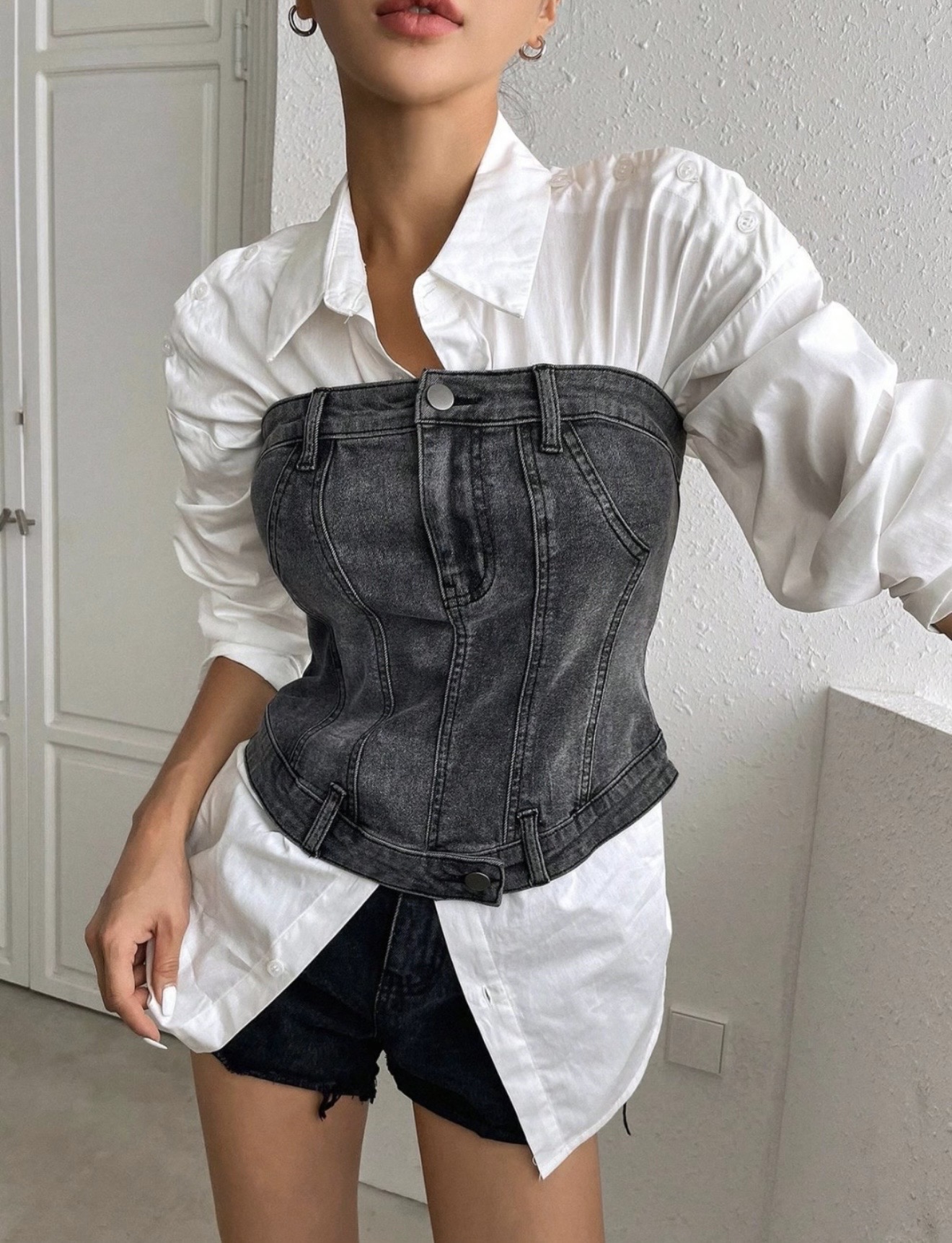 دکلته جین ذغالی وارداتی دخترونه