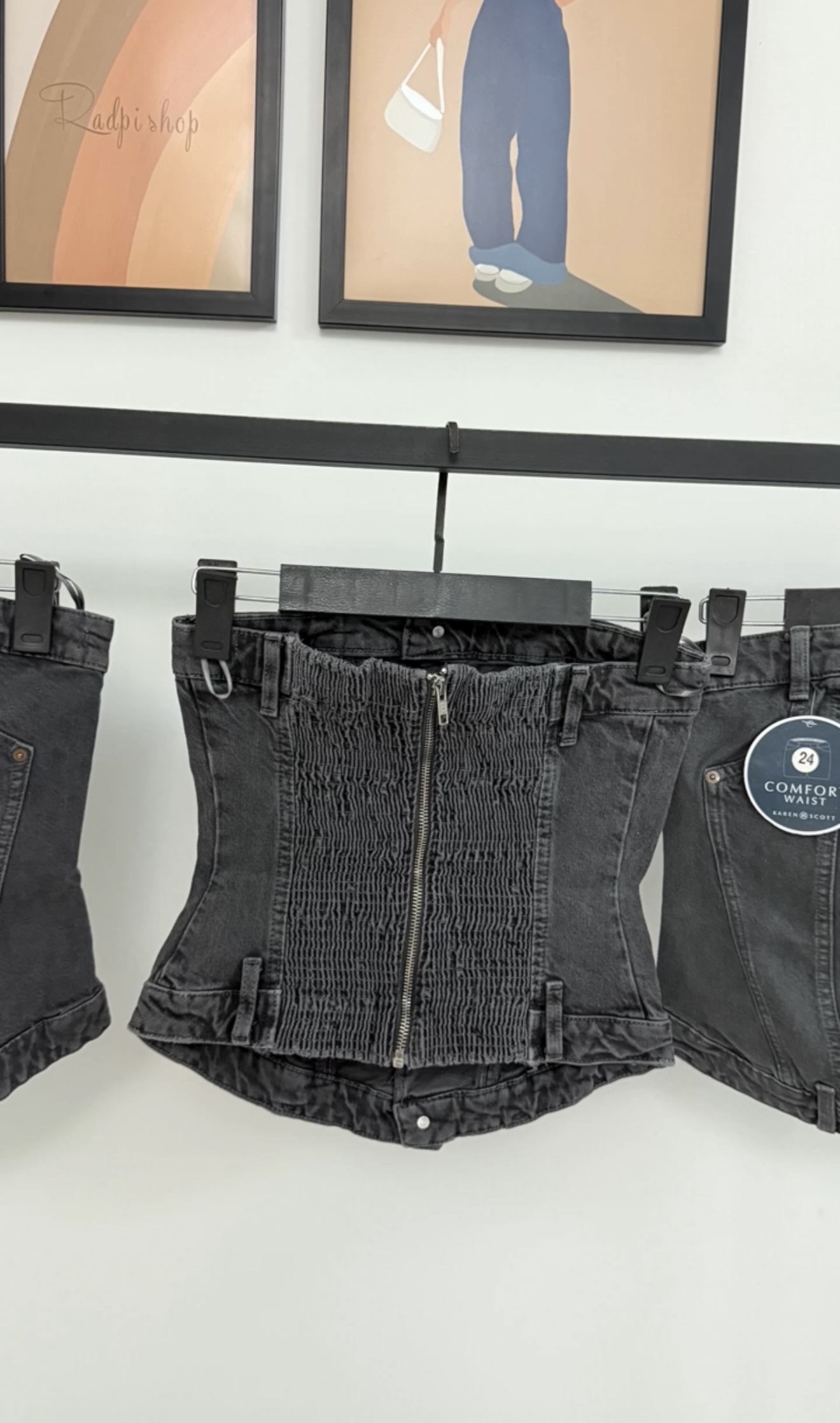 دکلته جین طوسی ذغالی فشن وارداتی دخترونه